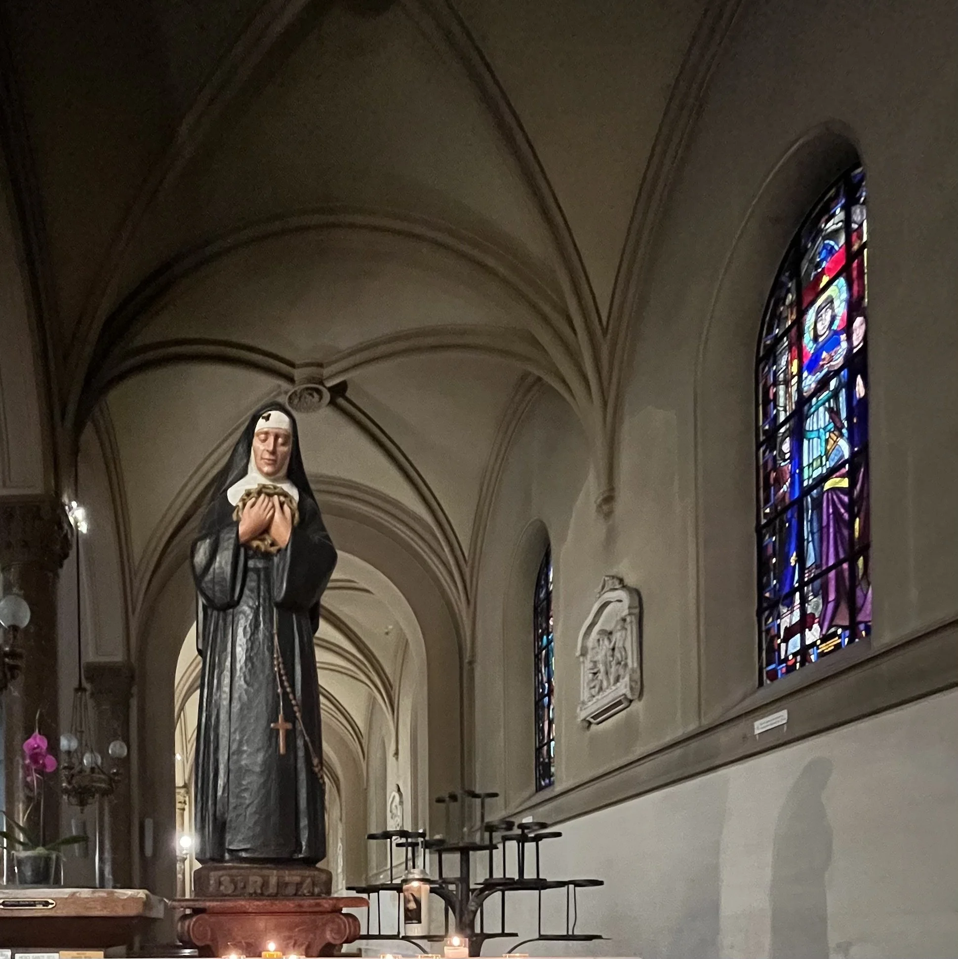 Finally, I walked inside the local cathedral. The first thing I noticed was a statue of a woman saint-Saint Rita. Okay, that clinched it. I’m just having a sad day. I get it.