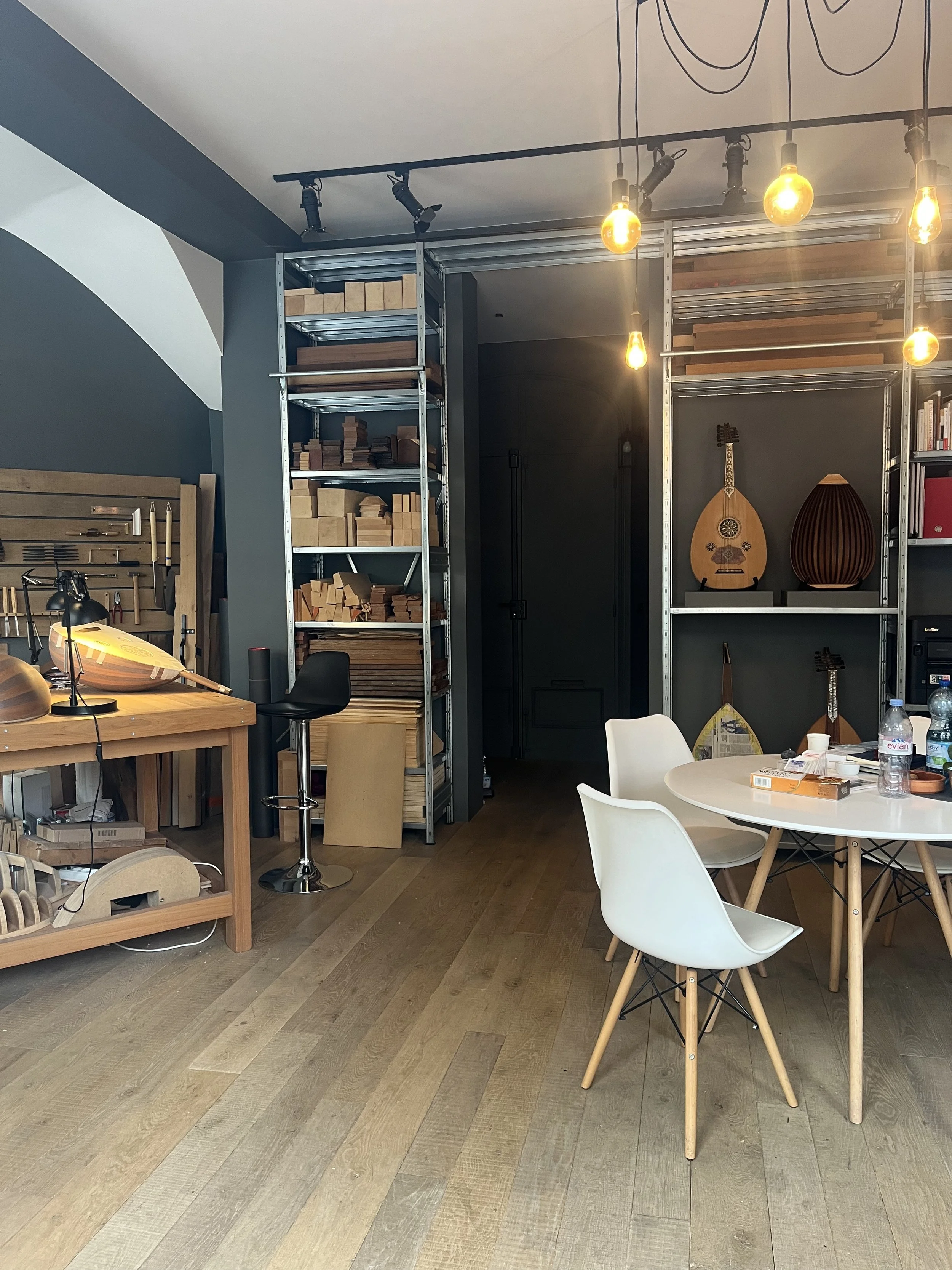 After lunch I puttered around the 2 or 3 blocks next to my place. There are 2 pharmacies, a hair salon, a laundromat, an art school for kids, a studio where a group of older ladies paint ceramics daily, 2 nice bookstores (libraires), a cheese shop, a magasin (store) where they only sell men’s socks, an atelier (workshop) of an instrument maker who makes mandolins. There is quite a variety of things and it’s fun just to peek through the window. Many businesses are closed on Mondays and Tuesdays anyway.